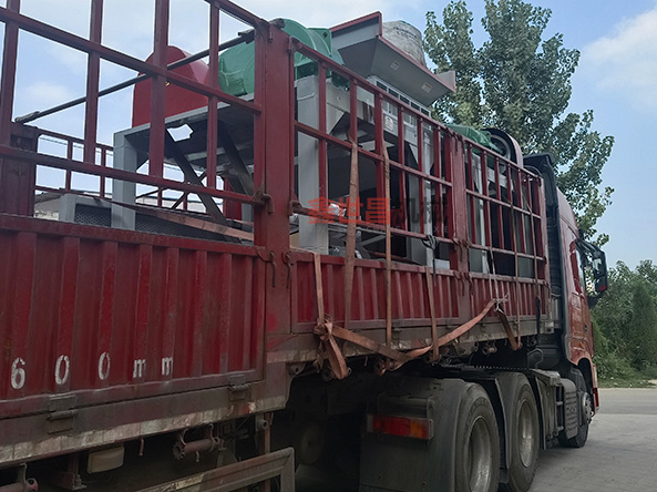 這是一臺(tái)內(nèi)蒙古客戶(hù)訂購(gòu)的1000型雙軸撕碎機(jī),客戶(hù)是用來(lái)處理鋼廠淘汰下來(lái)的除塵布袋,這套設(shè)備帶有分選裝置,可以將除塵袋撕碎料中的鐵片分選出來(lái),分別回收利用。