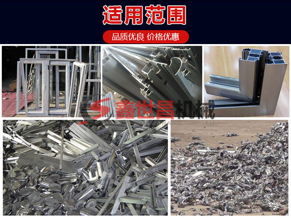 斷橋鋁破碎機適用于各種廢舊鋁型材、鋁基復合材料、廢鋁、鋁錠、鋁箔、鋁屑、鋁合金型材等廢舊鋁材的破碎加工,也可用于廢舊自行車、油漆桶、機油桶、柴油桶、汽車油箱、汽車水箱、自行車架子、壓塊、廢舊電視機、舊家電、銅鋁水箱、鋁合金、廢機鋁、汽車散熱器等中型廢金屬。鑫世昌生產(chǎn)多種型號規(guī)格的斷橋鋁破碎機日產(chǎn)量從5噸到100噸,用戶可根據(jù)產(chǎn)量配置。