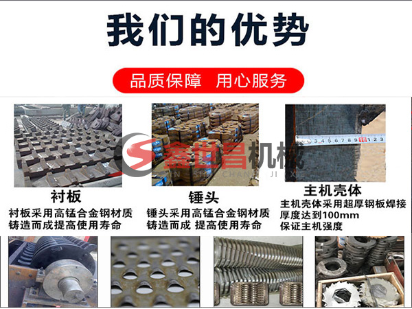 1、斷橋鋁破碎機的錘頭采用高錳鋼制作,對高硬度的物料也有著較好的破效果。